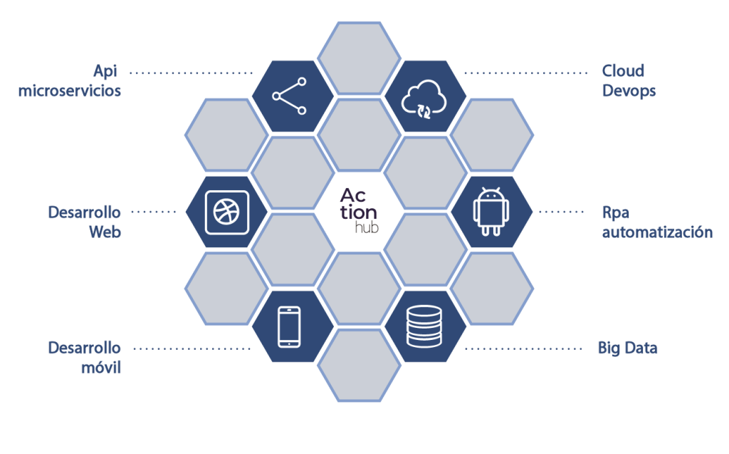 Actionhub potencia proyectos sobre tecnologías y digitalización de sistemas, a través de múltiples metodologías que maximizan la eficiencia y control del tiempo.
